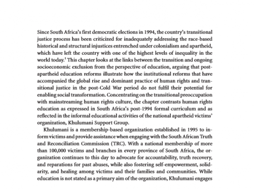 Read More"People's Power" in the Age of Human Rights: Victims' Contributions to Education in Post-Apartheid South Africa
