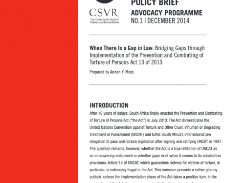 Read MoreNo.1 l December 2014. "Policy brief Advocacy programme." The Centre for the Study of Violence and Reconciliation.
